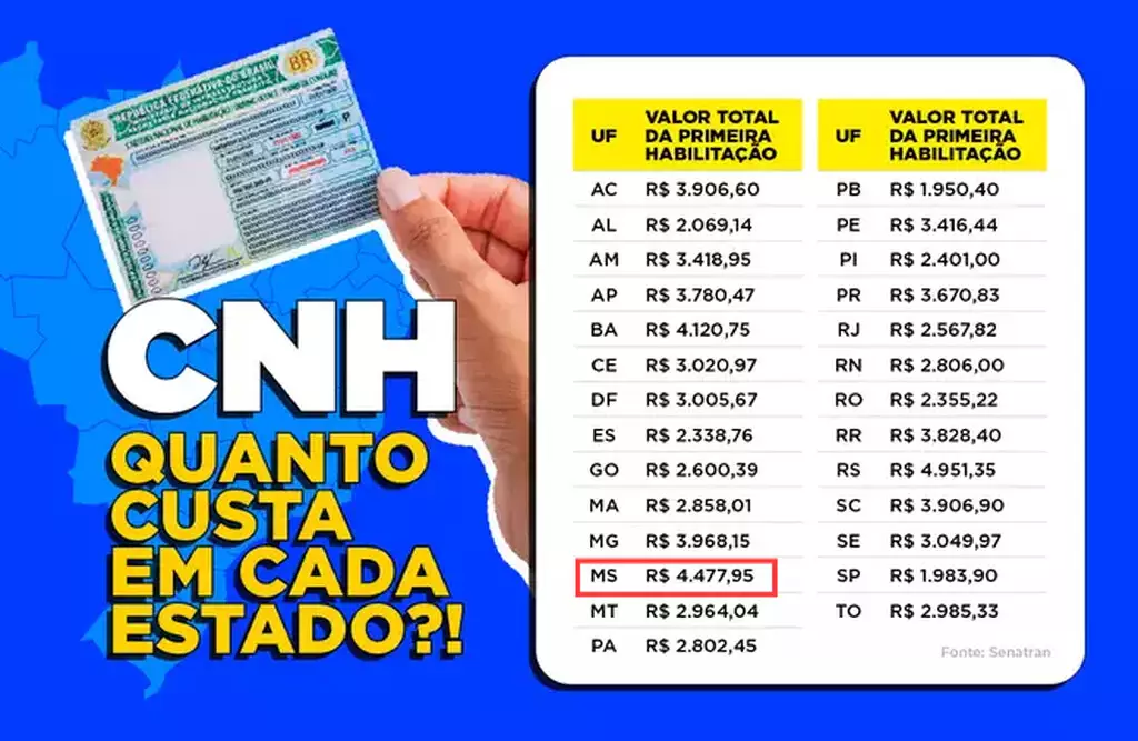 Tirar a CNH (Carteira Nacional de Habilitação) em Mato Grosso do Sul custa, em média, R$ 4.477,95, o segundo valor mais alto do país para a categoria AB (moto e carro). O dado é da Senatran (Secretaria Nacional de Trânsito) e coloca o estado atrás apenas do Rio Grande do Sul, onde o processo de habilitação chega a R$ 4.951,35.