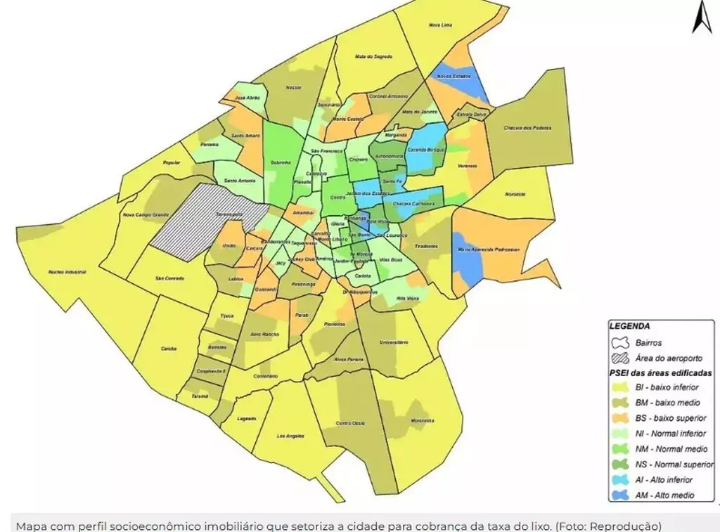 Os valores são definidos de acordo com o Mapa do Perfil Socioeconômico Imobiliário classifica a cidade em categorias Os imóveis classificados como Baixo Inferior pagarão R$ 0,25 por m² ao ano. Na outra ponta, nas regiões consideradas de padrão Alto Superior terão taxa de R$ 12,60 por m².