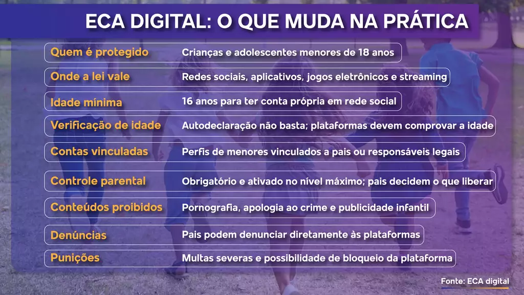 Sancionada em setembro de 2025 pelo presidente Luiz Inácio Lula da Silva (PT), a norma complementa o ECA ao aplicar seus princípios ao virtual. O foco está na prevenção de riscos como exploração sexual, violência, assédio, cyberbullying e publicidade predatória direcionada ao público infantojuvenil.