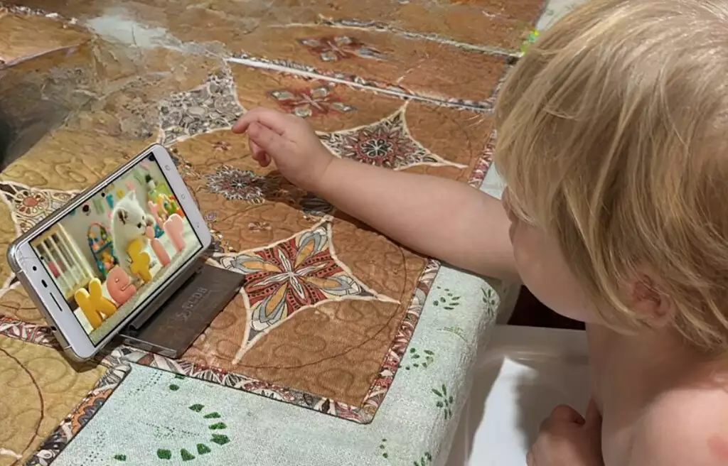 Criança assiste desenho infantil no celular. (Foto: Arquivo pessoal)