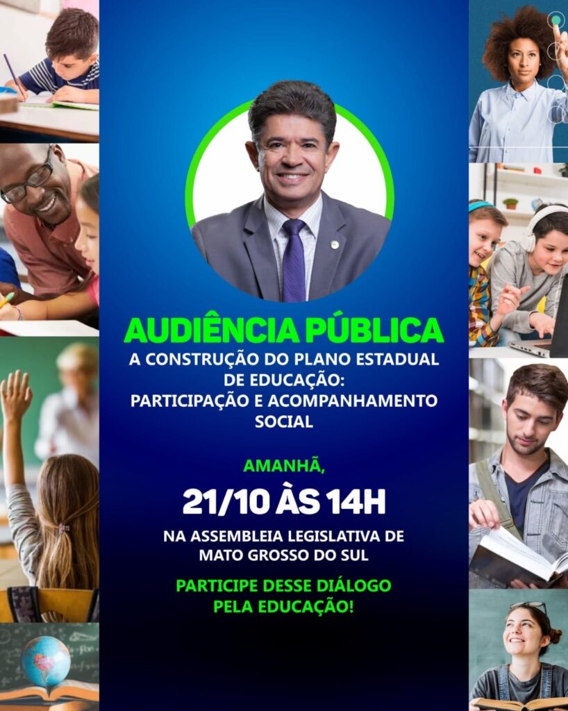 Deputado Professor Rinaldo promove audiência pública sobre o novo Plano Estadual de Educação Por: Noticias Digital – 21/10/2025 – fonte: Assessoria de Comunicação O deputado Professor Rinaldo Modesto (Podemos), presidente da Comissão Permanente de Educação, Cultura e Desporto da Assembleia Legislativa de Mato Grosso do Sul (ALEMS), promove nesta terça-feira (21), às 14h, no Plenário […]