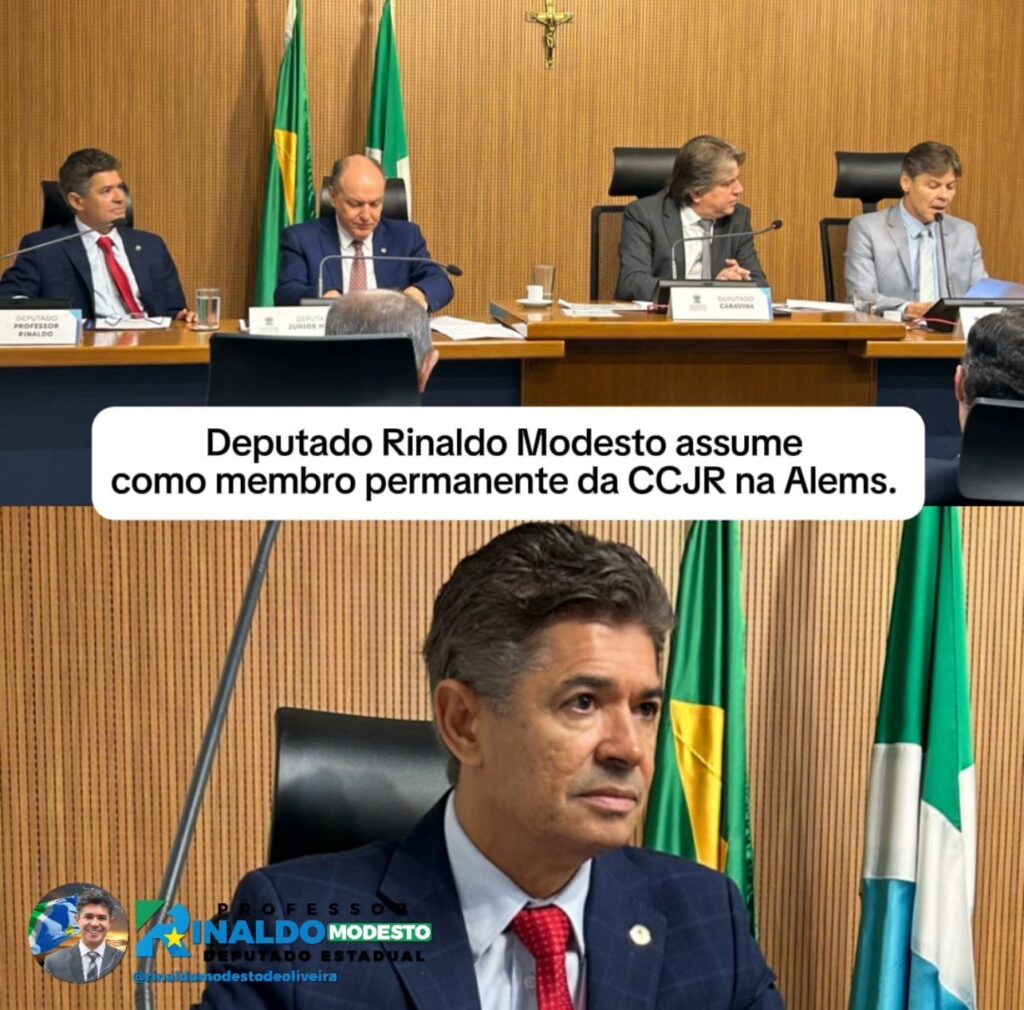 Rinaldo Modesto assume como membro permanente da CCJR na Alems Por: Noticias Digital – 27/02/2026 – fonte: Assessoria de Comunicação O deputado estadual Professor Rinaldo Modesto assumiu oficialmente, nesta terça-feira, 25, como membro permanente da Comissão de Constituição, Justiça e Redação da Assembleia Legislativa de Mato Grosso do Sul (Alems). A indicação ocorre dentro da […]